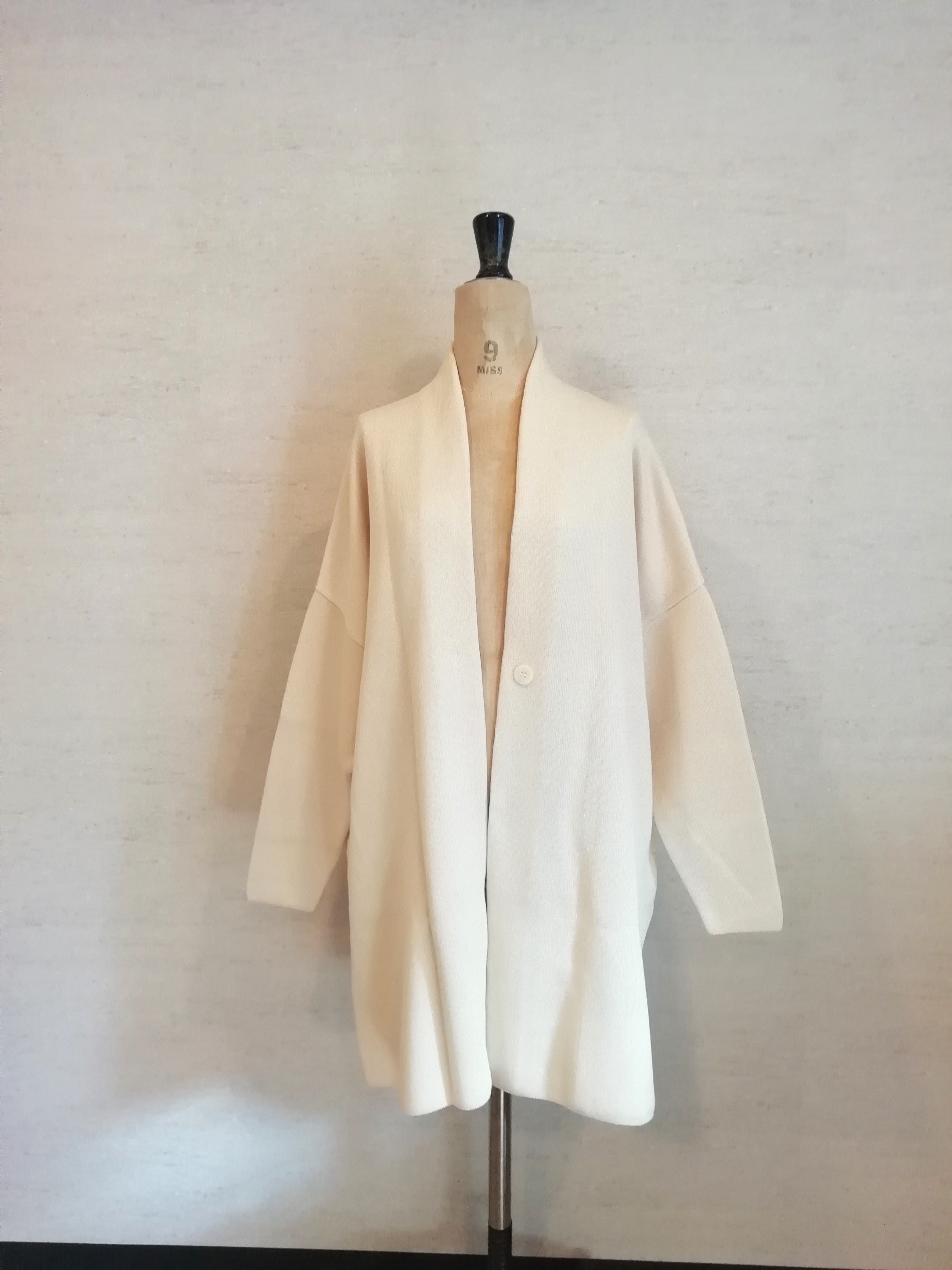 前中心にボタンが1つついていますが、基本的には開けて着ていただくほうがスタイルがキマります!両脇にスラッシュポケット、サイドにスリットが入っており、本格的なコート仕様です。綿100%なのでインナー次第で真冬も、春先のスプリングコートとしても、長い期間ご着用頂けるスグレモノ。使いやすい丈感、ボリュームのあるシルエットでスタイリングも思いのままです。