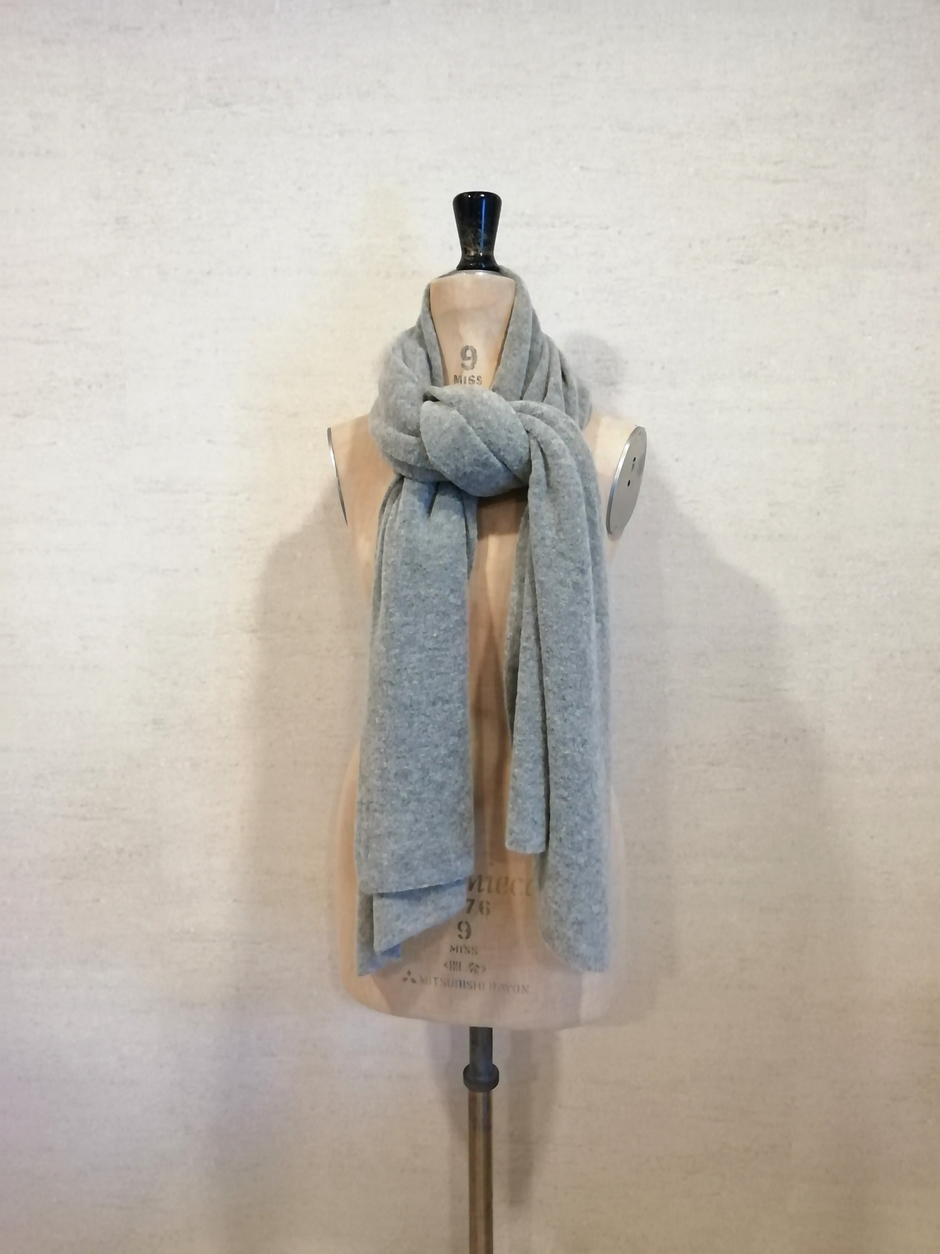 【Shiratakaknitichi】極ふわ♡ウールブークレロング丈ストール ライトグレー杢