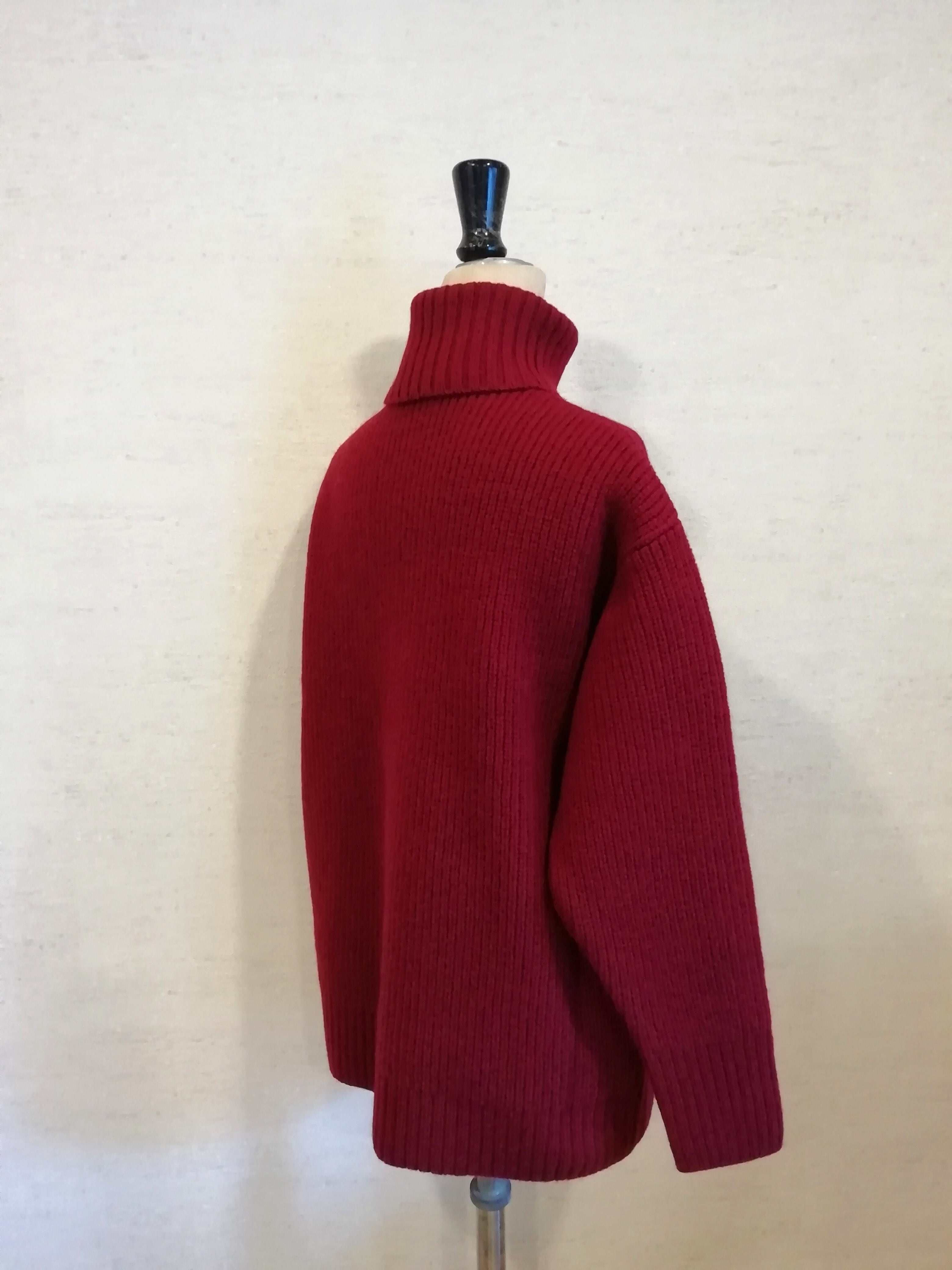 【KEIICHILO】毛100%本格派タートルネックプルオーバー エンジ